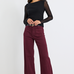 Zoey Burgundy Plum High Rise Wide Leg Pocket Jean