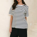 Cobble Navy Ecru Stripe Rib Cutaway Tank