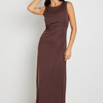 Olympic Chocolate Jersey Sleeveless Midi Dress