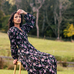 Stage Black Ivory Cut Out Print Puff Sleeve Floaty Maxi Dress
