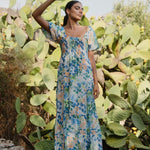 Stage Blue Floral Puff Sleeve Floaty Maxi Dress