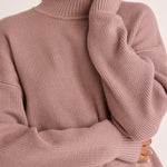 Motivation Raspberry Funnel Neck Fine Knit Jumper