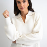 Aurora Ivory Scoop Neck Crochet Knit Jumper