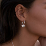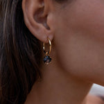 Oriya Gold with Moonstone Charm Hoop Earrings