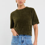 Perfect Black Rib Rouched Side Crop Tee