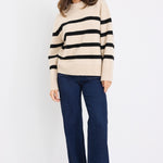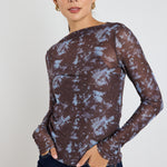 Orielle Brown Cream Stripe Mesh Sleeveless Top