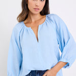 Expedition Blue Shirred Neck Short Sleeve Top