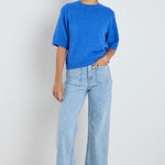 Camden Bright Blue Stripe Short Sleeve Pleated Midi Shirt Dress