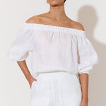 Polished Ivory Linen High Neck Pleat Sleeve Top