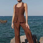 Polarity Chocolate Linen Viscose Crew Neck Fitted Vest