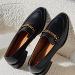 Castella Black Leather Gold Chain Loafer