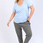 Perfect Pale Blue Rib Rouched Side Crop Tee