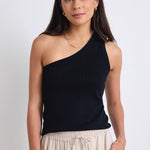 Cobble Navy Ecru Stripe Rib Cutaway Tank