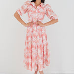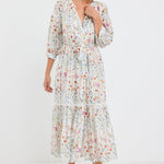 Wisdom Cream Floral Balloon Sleeve Midi Shirt Dress