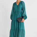 Adair Navy Vibrant Floral Long Sleeve Tiered Shirt Style Maxi Dress