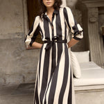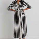 Cyprus Black and White Stripe LS Shirt Midi Dress