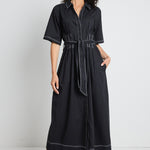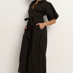 Service Black Cotton Short Sleeve Midi Shirt Dress
