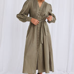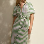 Kindred Moss Stripe Puff Sleeve Midi Shirt Dress