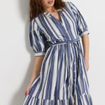 Insight Navy Stripe Balloon Sleeve Midi Shirt Dress