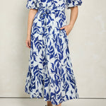 Maeve Blue Resort Print Short Sleeve Midi Shirt Dress