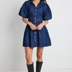 Sundown Indigo Denim Puff Sleeve Mini Shirt Dress