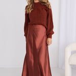 Faithful Charcoal Irregular Stripe Satin Bias Midi Skirt
