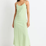 Delightful Cherry Polka Dot Satin Bias Slip Maxi Dress