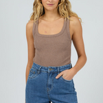 Cobble Khaki Ivory Stripe Rib Cutaway Tank