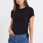 Perfect Pale Blue Rib Rouched Side Crop Tee