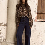Cosmopolitan Leopard Print Crew Neck Floaty LS Top