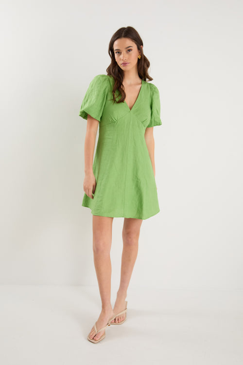 Adelaide Apple Linen Puff Sleeve Panelled Mini Dress