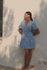 Adelaide Sky Blue Linen Puff Sleeve Panelled Mini Dress
