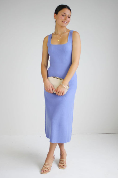 Adore Blue Rib Knit Scoop Neck Cut Out Tank Dress WW Dress Among the Brave