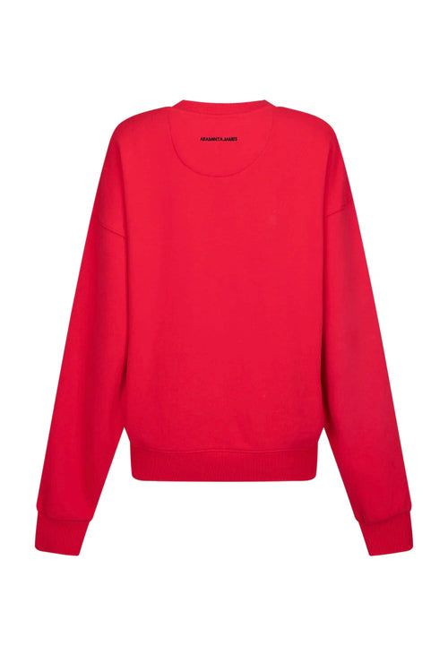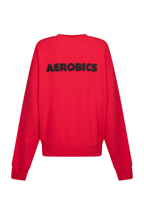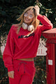 The Aerobics Sweatshirt in Tulip Red is cut in a beautiful cotton brushed fleece. Featuring an exclusively designed shearling applique on the front in a contrasting Espresso hue. The Aerobics Sweatshirt is effortlessly cool.