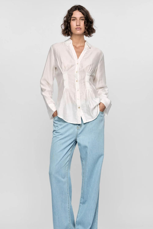 A timeless classic with a feminine twist. The Amara Pintuck Shirt is crafted from a lightweight fabric with a soft crinkle texture, making it perfect for everyday wear. Designed with pin-tuck pleats at the waist for subtle shaping, it features a button-down front, full-length sleeves with buttoned cuffs, and a relaxed fit that tucks in or drapes with ease.