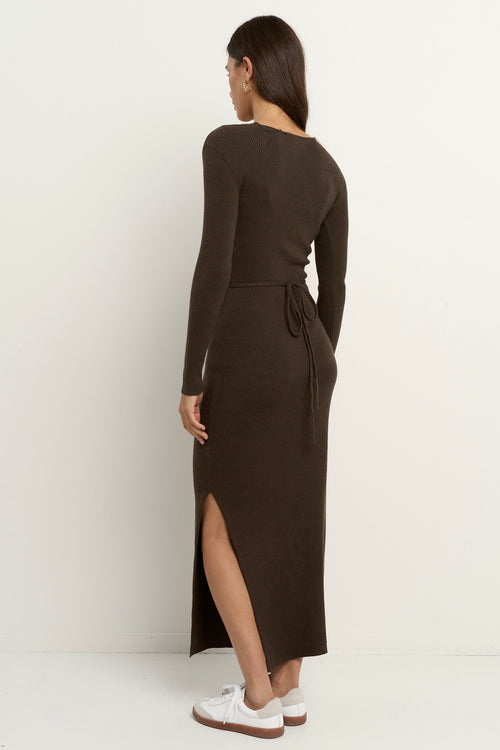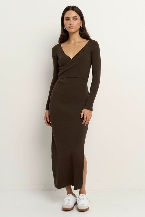 Another Dark Khaki Wrap Rib Knit Maxi Dress