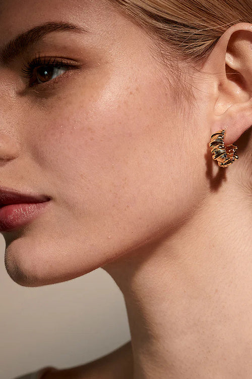 The April Hoops offer a modern twist on timeless earrings. Featuring a soft folds in an organic style. Lightweight and durable, they are sure to make a statement.