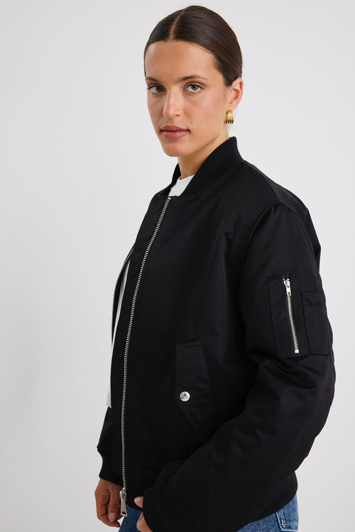 - Classic bomber cut with ribbed trims for a structured finish