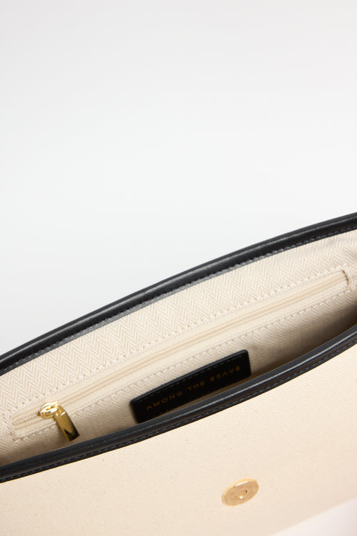 Belle Natural Canvas Black Leather Trim Crossbody Bag