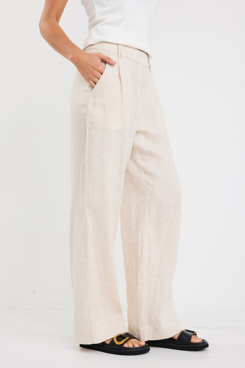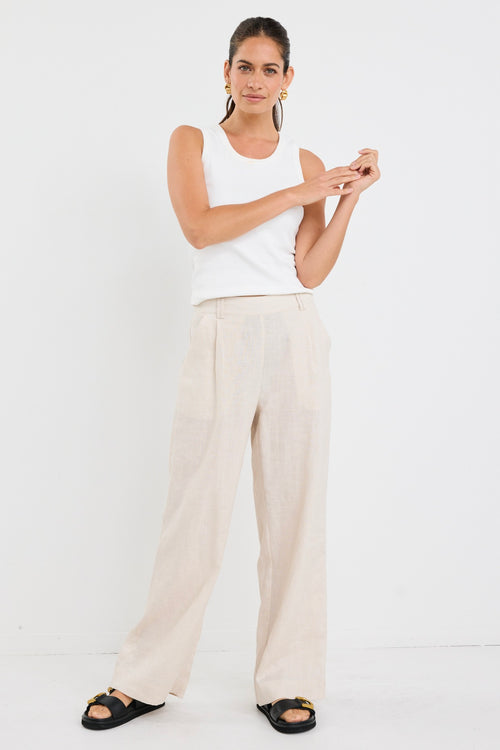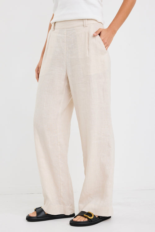 Bestow Pumice Linen Elastic Back Wide Leg Pants