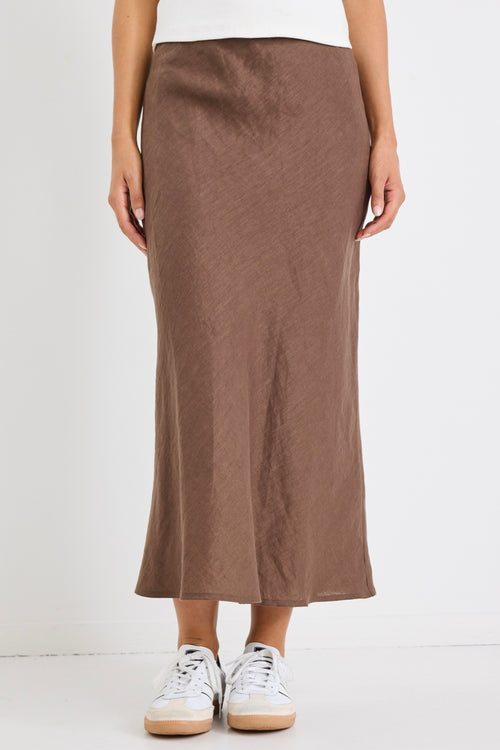 Love this skirt! The chocolate linen is so rich and versatile, and the bias cut gives it the perfect drape and flattering fit. Ideal for both casual days and dressier occasions!