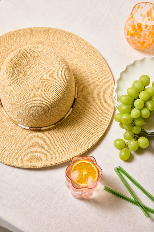 Elevate your style with the Candace Raffia Multi Band Wide Brim Hat. This wide brim hat is breathable and lightweight providing both comfort and style. Featuring a multi coloured band this floppy hat is the perfect accessory for your next pool day.