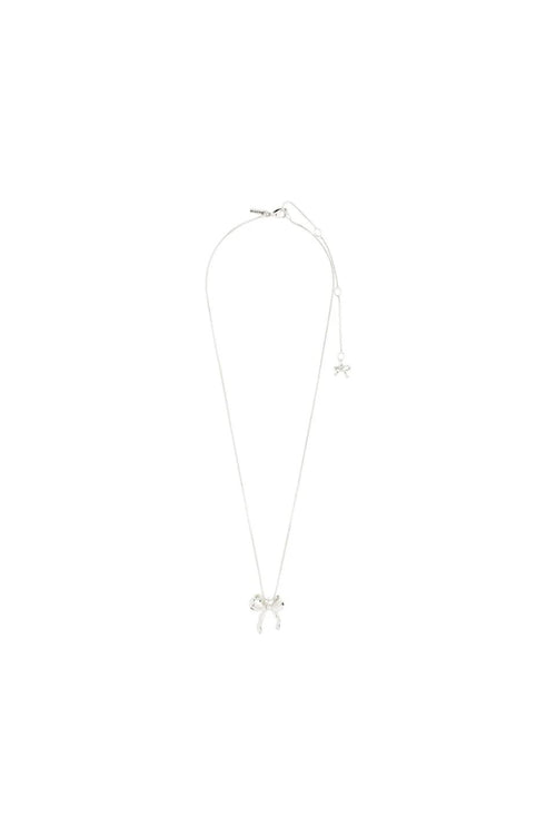 Wear a bow, steal the show, with the silver-plated bow necklace from Pilgrim. The classic slim box chain with a stylish bow pendant is sure to become your favourite accessory this season. Cute, simple, and right on point, the bow necklace is your shortcut to an effortlessly sleek look. The chain measures 38 cm with a 12 cm extension chain and is made from 99% recycled materials, so you can feel good about your fashion-forward choice.