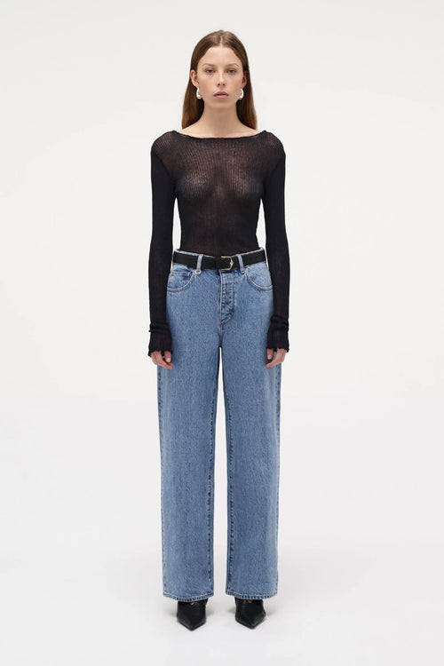 Coco Relaxed is a high waisted, relaxed straight leg jean. To wear high waisted take a size down. To wear on your hips for a more relaxed look take your true size.