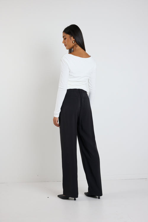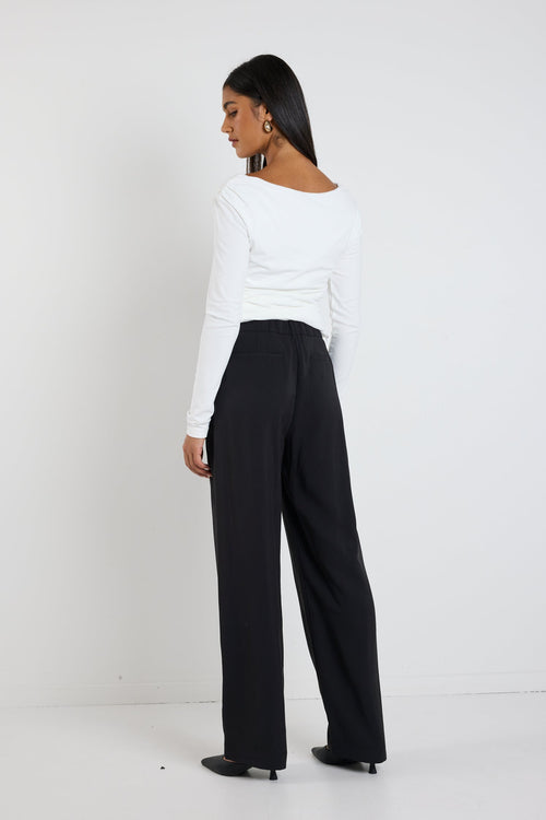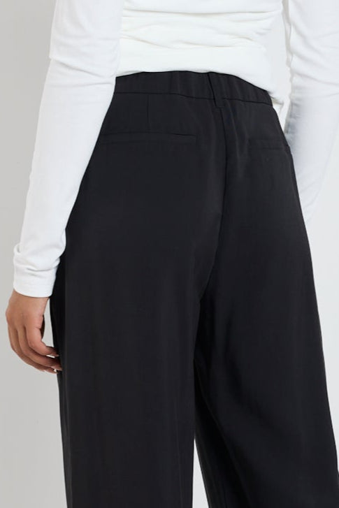 Refined yet effortlessly relaxed, these black wide-leg trousers are a dream addition to your wardrobe. made from a luxe viscose blend, they drape beautifully and feel ultra-soft against the skin. The fluid silhouette is both flattering and versatile, while the tailored waistband keeps things polished. Whether you’re dressing up or keeping it casual, these trousers will have you covered.