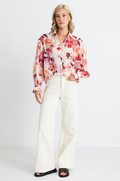 Connection Vintage Blush Floral Button Front Long Sleeve Blouse