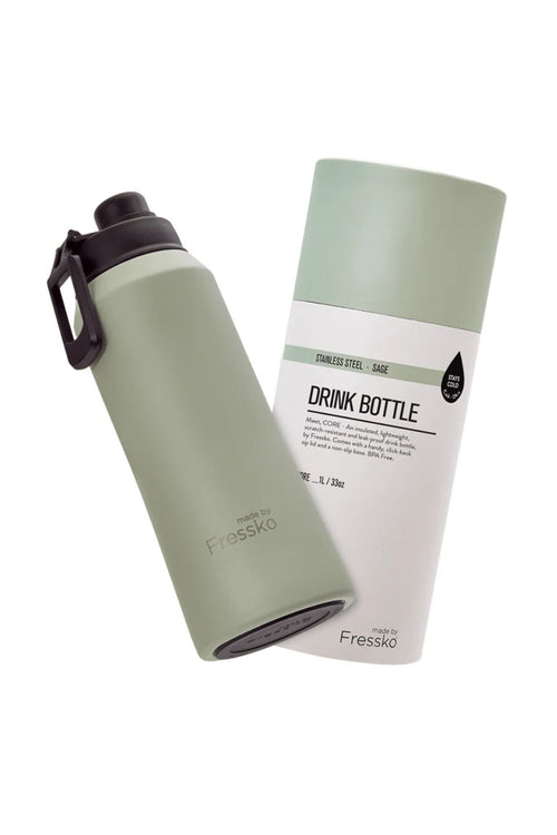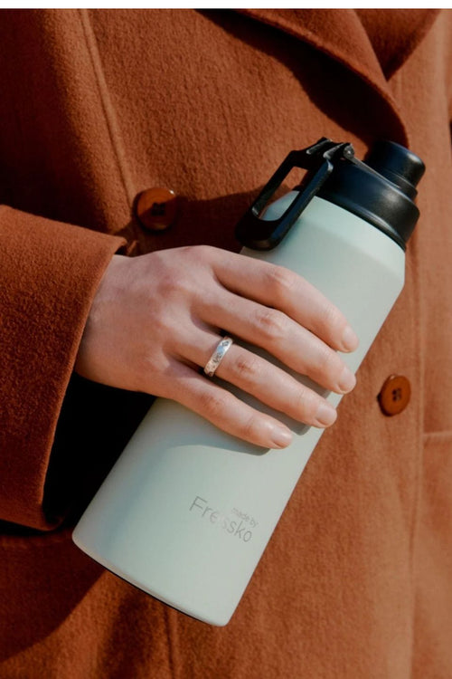Fressko's elegantly designed, chemical-free, lightweight, insulated stainless steel reusable bottle in light sage has a generous 1-litre capacity to ensure you meet your daily hydration goals effortlessly. Blend style with practicality for continuous refreshment and all-day hydration.