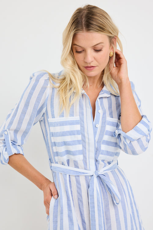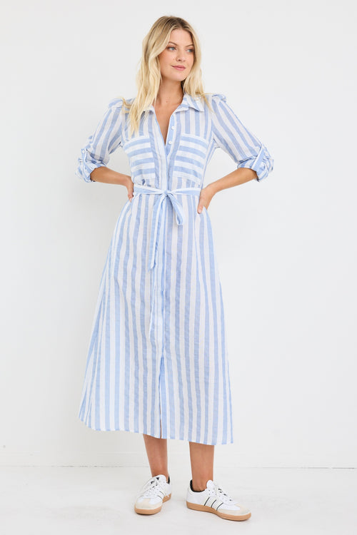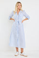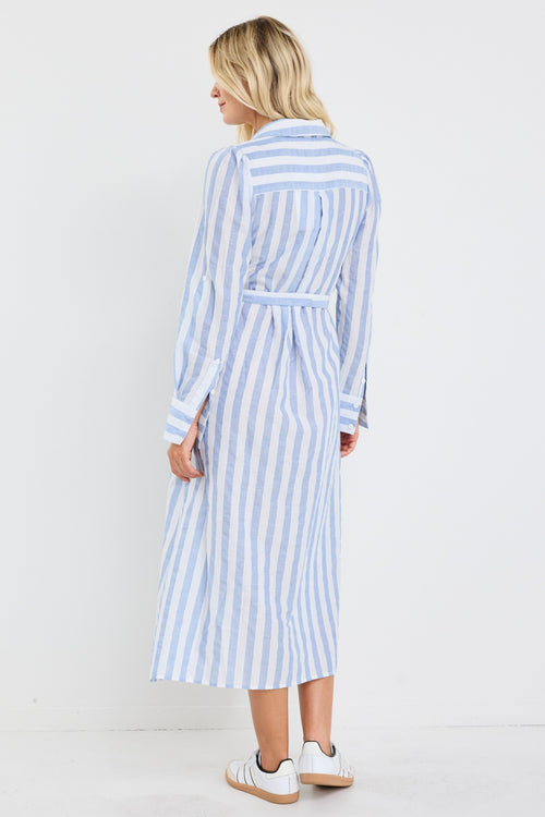 Cyprus Blue Stripe LS Shirt Midi Dress