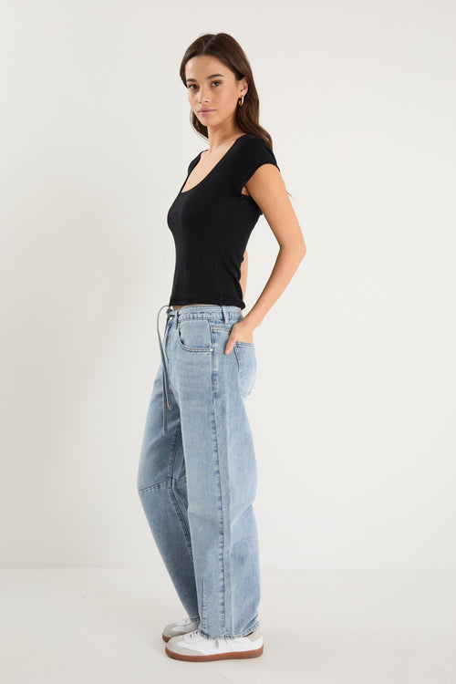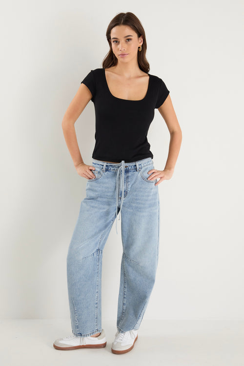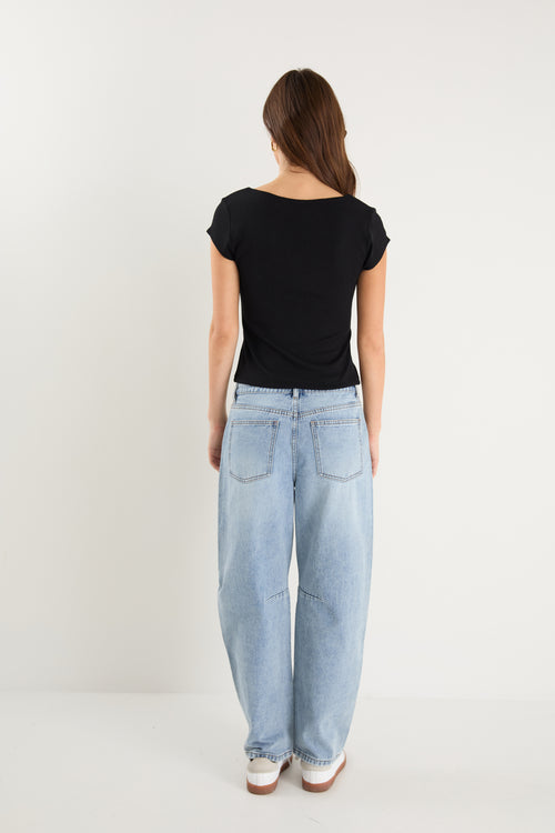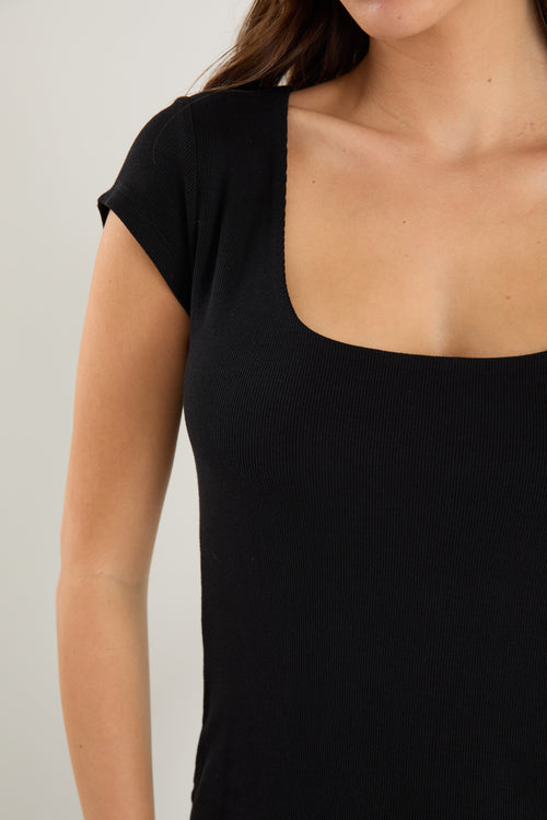 Definitive Black Cap Short Sleeve Square Neck Stretch Top
