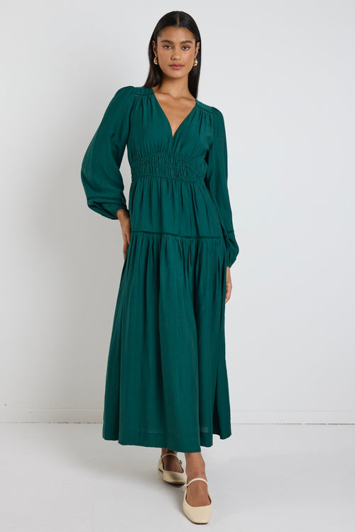 Divine Forest Balloon Sleeve Tiered Maxi Dress